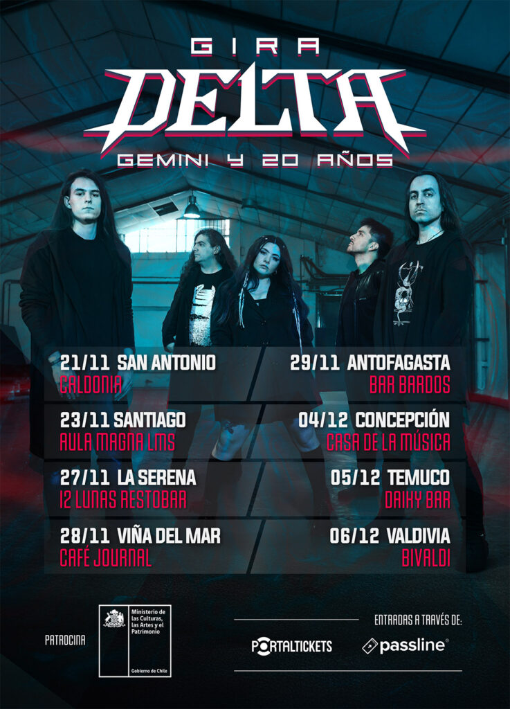 La reconocida banda de metal progresivo Delta anuncia su esperado regreso a la carretera chilena con el tour “Gemini y 20 Años”. La gira, que celebra dos décadas de trayectoria discográfica y promociona su aclamado nuevo álbum “Gemini”, recorrerá ocho ciudades entre noviembre y diciembre.