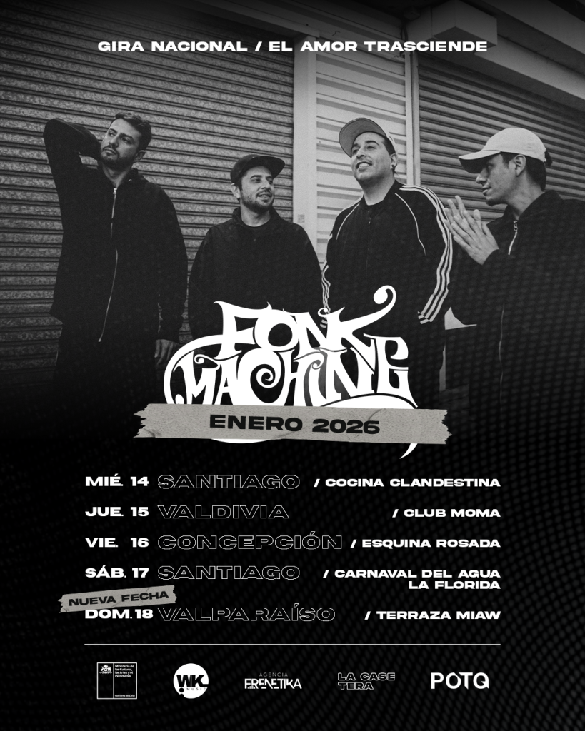 Tras un intenso y exitoso 2025, la banda chilena Fonk Machine presenta su Gira Nacional “El Amor Trasciende”, un recorrido que los llevará durante enero de 2026 por Valdivia, Concepción, Valparaíso y Santiago, marcando su primera visita al sur de Chile y un nuevo hito en su trayectoria artística.