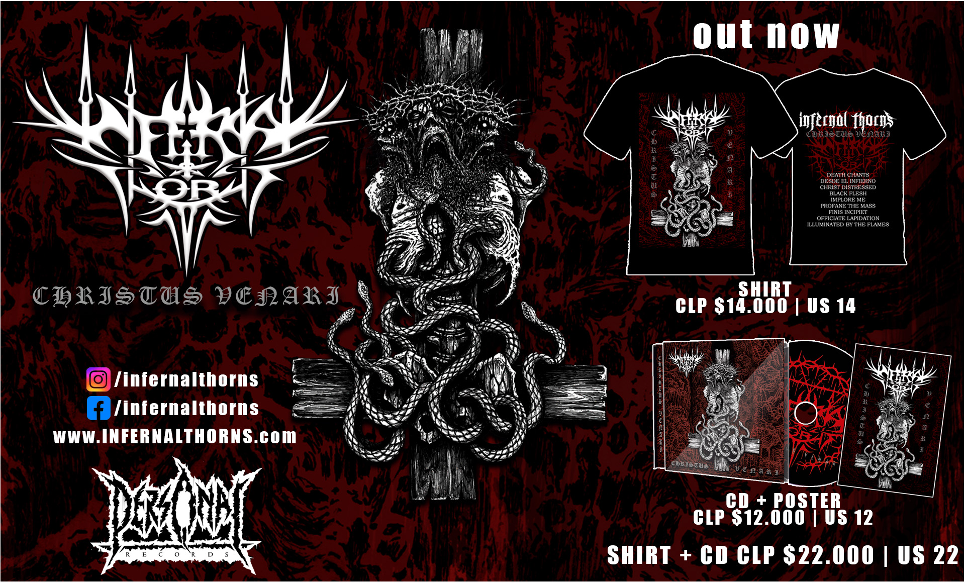 La banda chilena INFERNAL THORNS, oriunda de Valparaíso, anuncia con orgullo el lanzamiento de su tercer álbum de estudio, titulado “CHRISTUS VENARI”. El disco ya se encuentra disponible en Spotify, YouTube, Bandcamp y en todas las plataformas digitales.