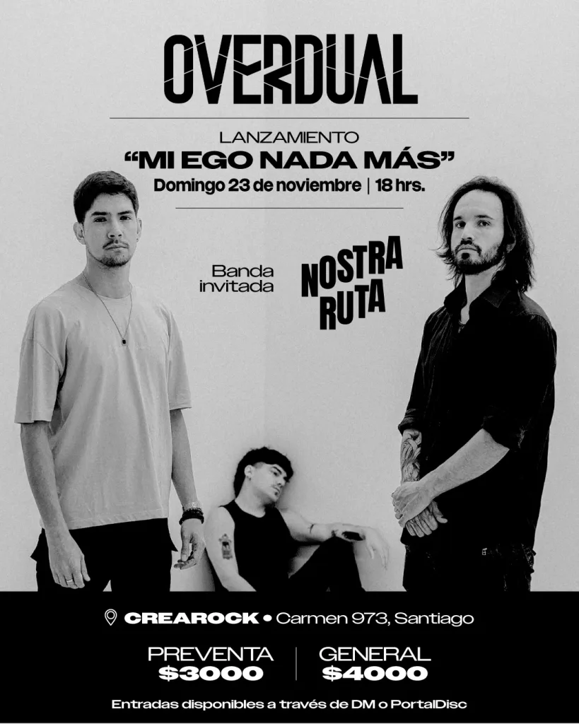 El dúo santiaguino OverDual presenta su nuevo EP titulado Mi Ego Nada Más, una producción de cinco canciones que marca una nueva etapa creativa y sonora para la banda. Con un sonido más experimental y alternativo, el grupo abre caminos hacia nuevas texturas incorporando sintetizadores y capas de guitarra acústica, sin perder la energía del rock que los caracteriza.