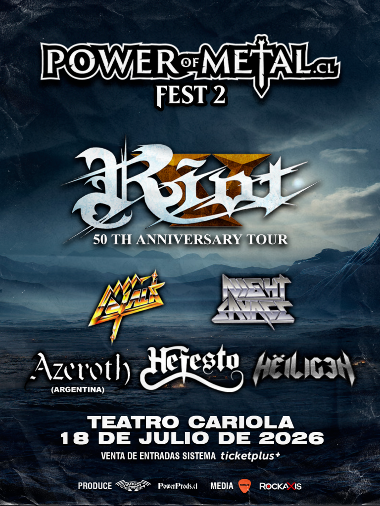 ¡Buenas noticias para los amantes del subgénero! Tras un sólido debut en el año 2025, PowerOfMetal.CL Fest ha confirmado su segunda edición, la que llegará encabezada por Riot V, agrupación estadounidense que regresará a nuestro país para celebrar nada menos que 50 años de trayectoria. La cita se realizará el próximo 18 de julio en el Teatro Cariola y contará también con otra banda internacional, además de cuatro representantes del metal nacional.