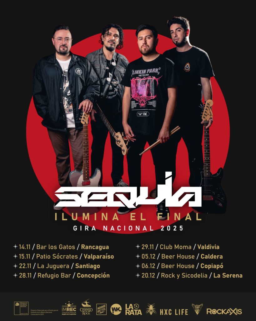 La banda serenense, Sequía, comienza un nuevo capítulo en su historia con el inicio de su primera gira nacional titulada “Ilumina el final”, inspirada en su más reciente single. Este proyecto se hace realidad gracias al apoyo del Fondart 2025 del Ministerio de las Culturas, las Artes y el Patrimonio, que permitirá llevar su propuesta musical a distintas regiones del país, conectando con nuevas audiencias y reencontrándose con quienes han acompañado su camino desde los primeros días.
