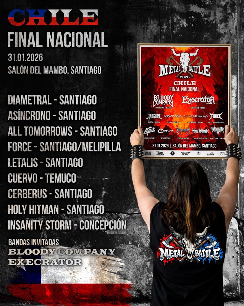 Nueve de las bandas más destacadas de la escena metalera nacional fueron seleccionadas para esta instancia crucial, donde se disputarán solo dos cupos para representar a Chile en la Final Regional Sudamericana de Metal Battle, que se llevará a cabo en Lima, Perú en el mes de febrero. Allí, los proyectos clasificados competirán frente a bandas de otros países del continente por el paso directo al legendario Wacken Open Air Alemania.